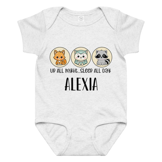 Personalized Up All Night Sleep All Day Nocturnal Animals Infant Bodysuit